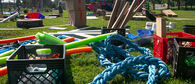 Loose parts are an important part of the playwork canon and have strong roots in the UK within adventure playgrounds and with groups such as Pop-Up Adventure Play. David Rockwell’s Imagination Playground has also a taken a page from the loose parts experience in the creation of the big blue block play environments.