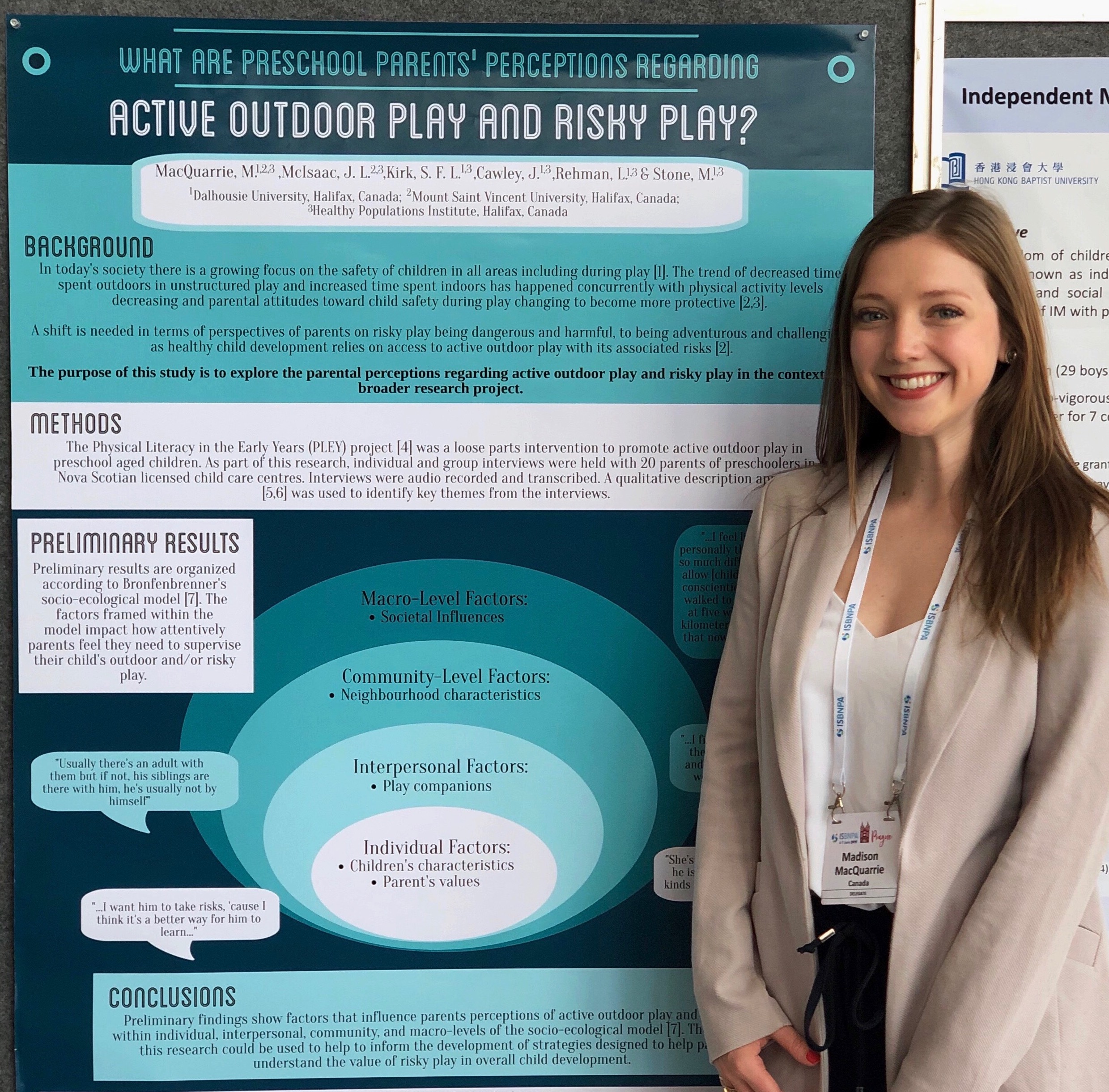 Madison is a MA candidate (Health Promotion) Dalhousie University, and a Student Research Scholar in the Healthy Populations Institute at Dalhousie. Over the past few years, she has developed a keen research interest in the health of children in the early years, specifically related to physical activity.