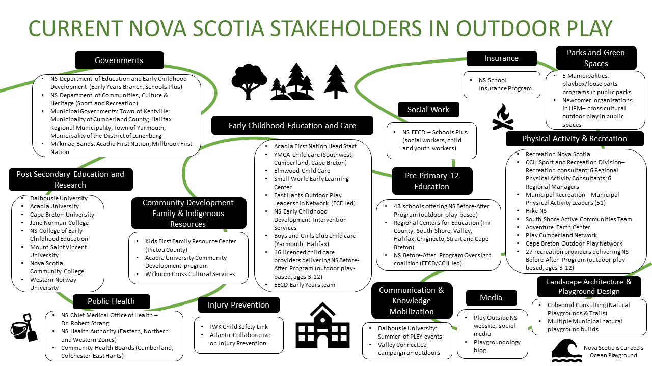 Editors Note: The below map outlines the current Outdoor Play Stakeholders in Nova Scotia who are committed to achieving the shared goal of advancing outdoor play and early childhood education across Canada.
